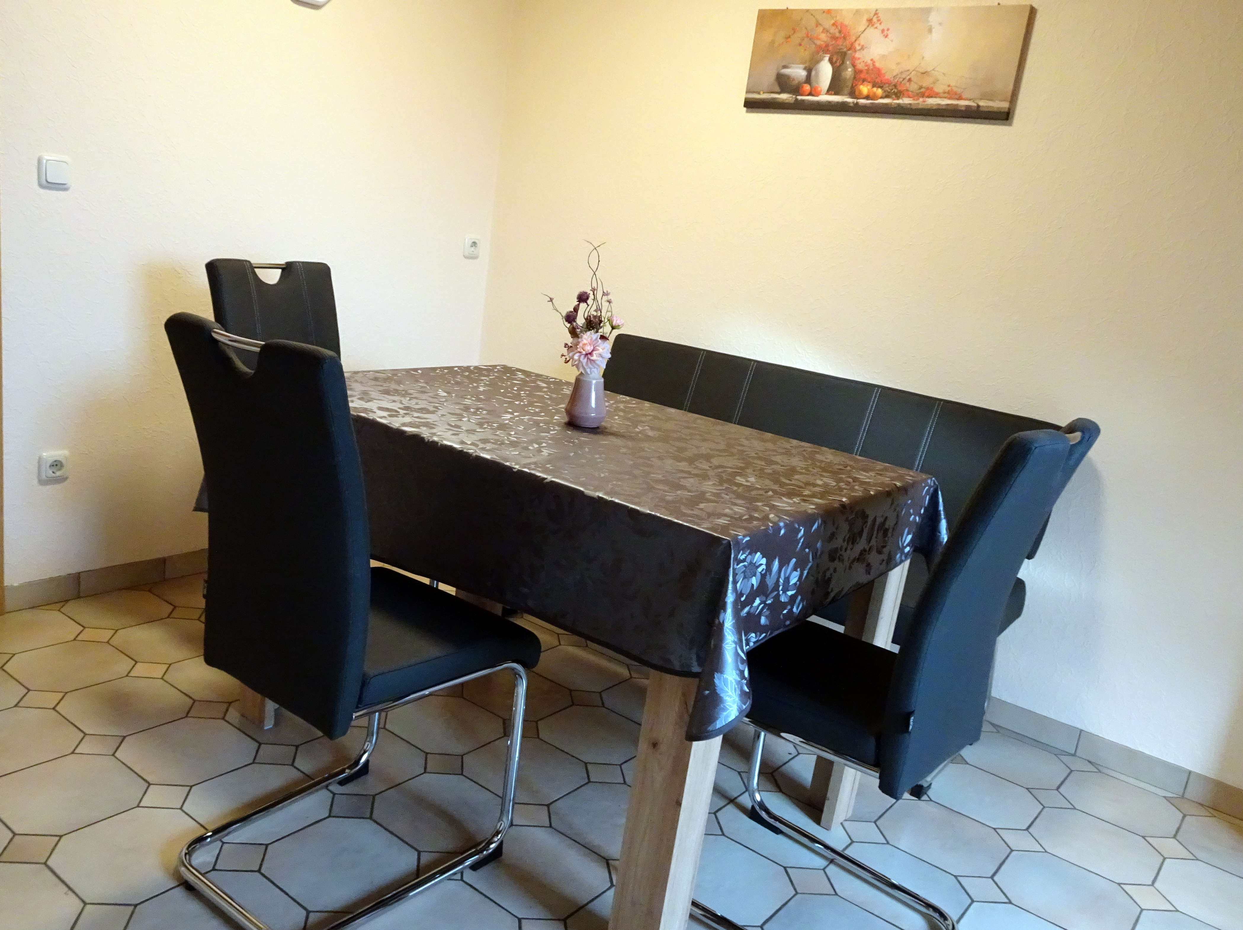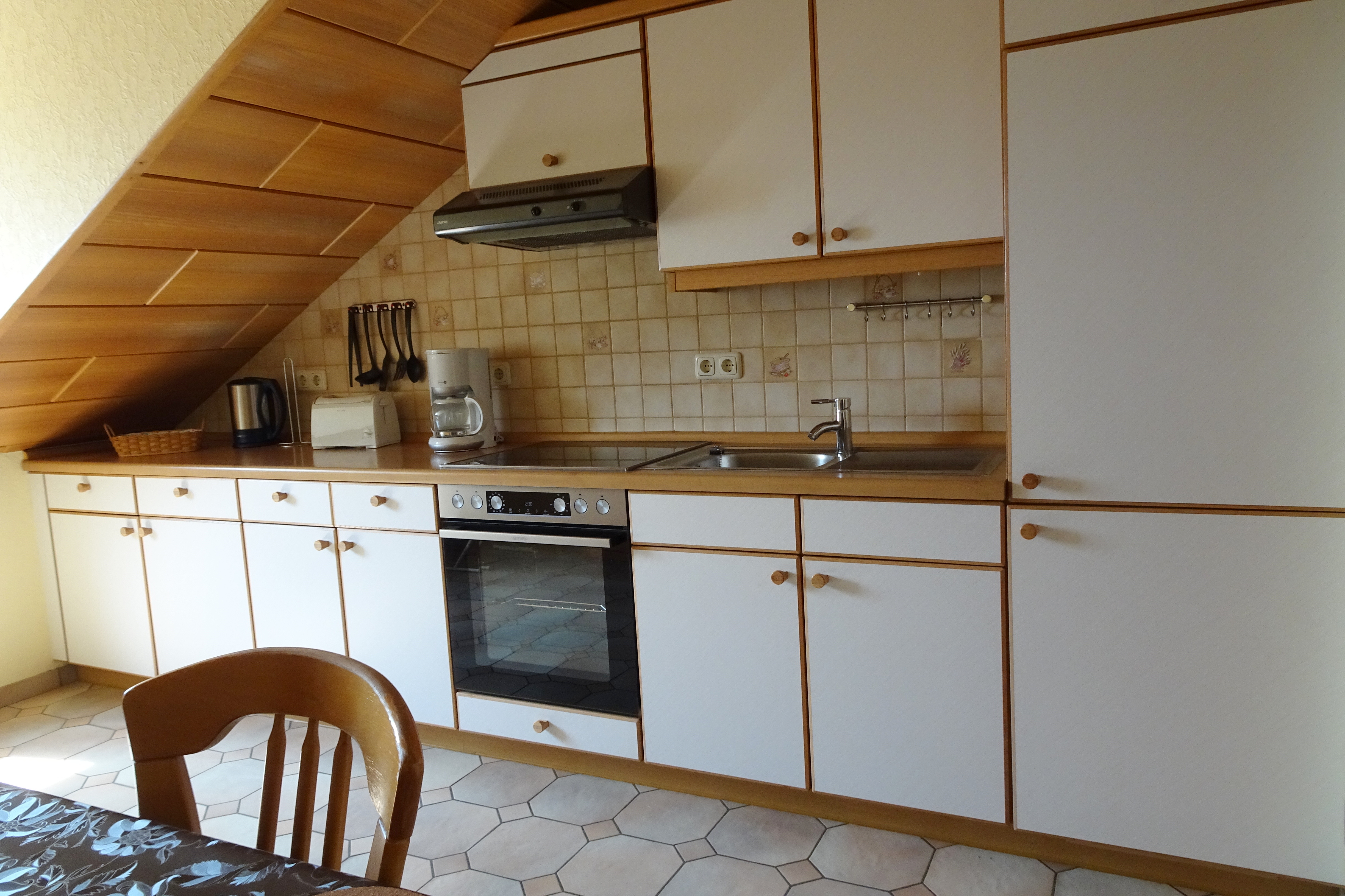 Voll ausgestattete Küche mit Essecke